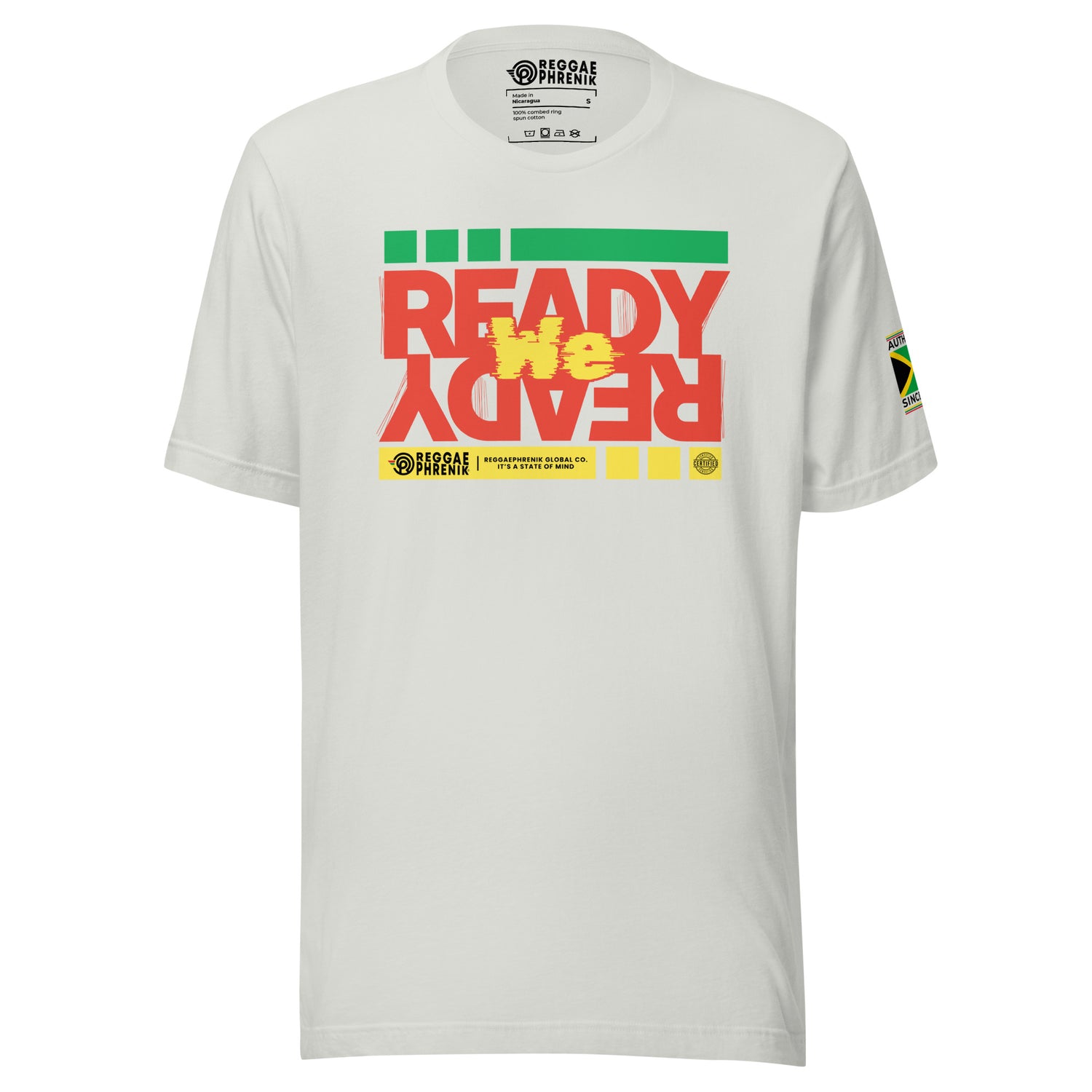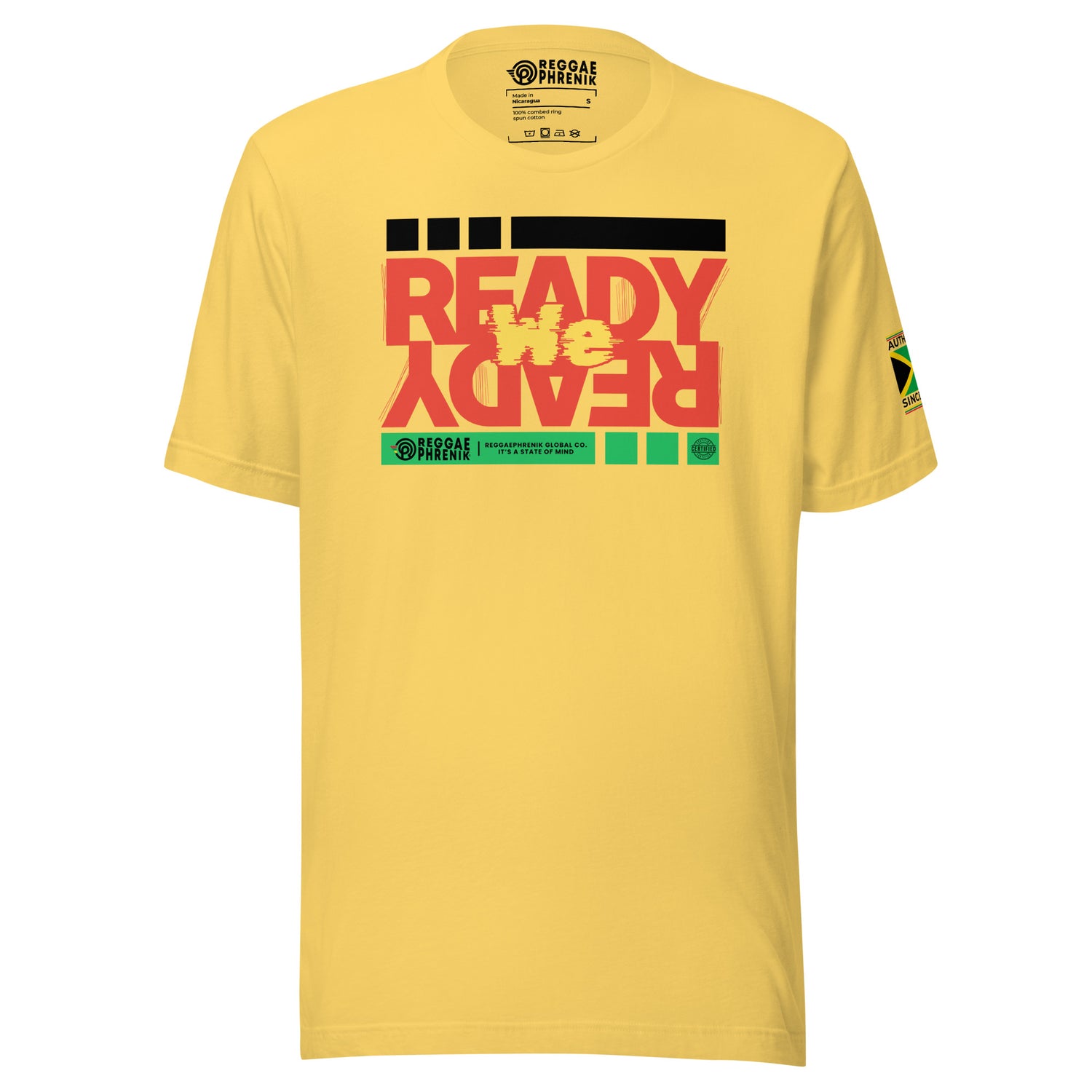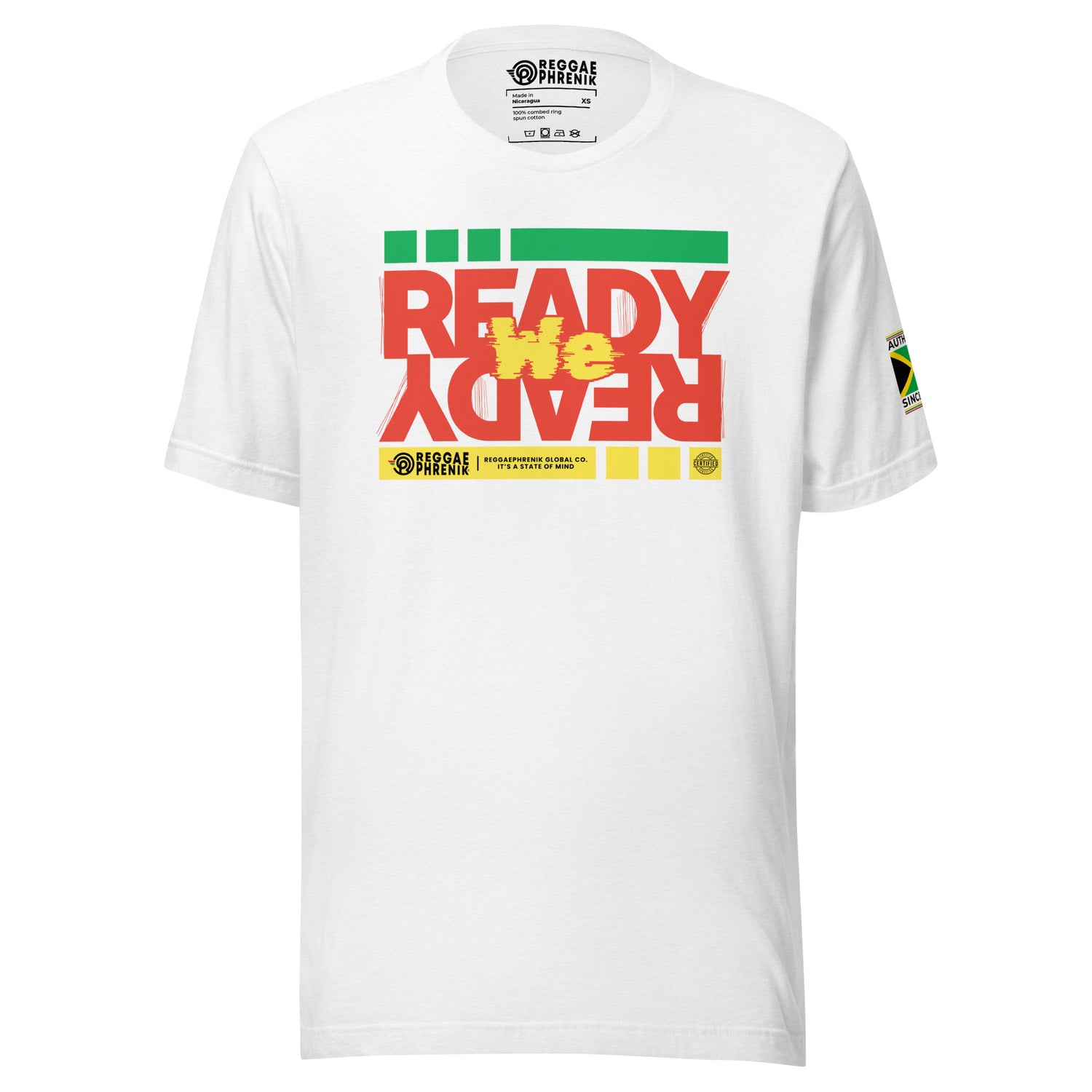 The ReggaePhrenik Ready We Ready tee has a structured, classy fit and is durable and soft, thanks to its ring-spun cotton material.