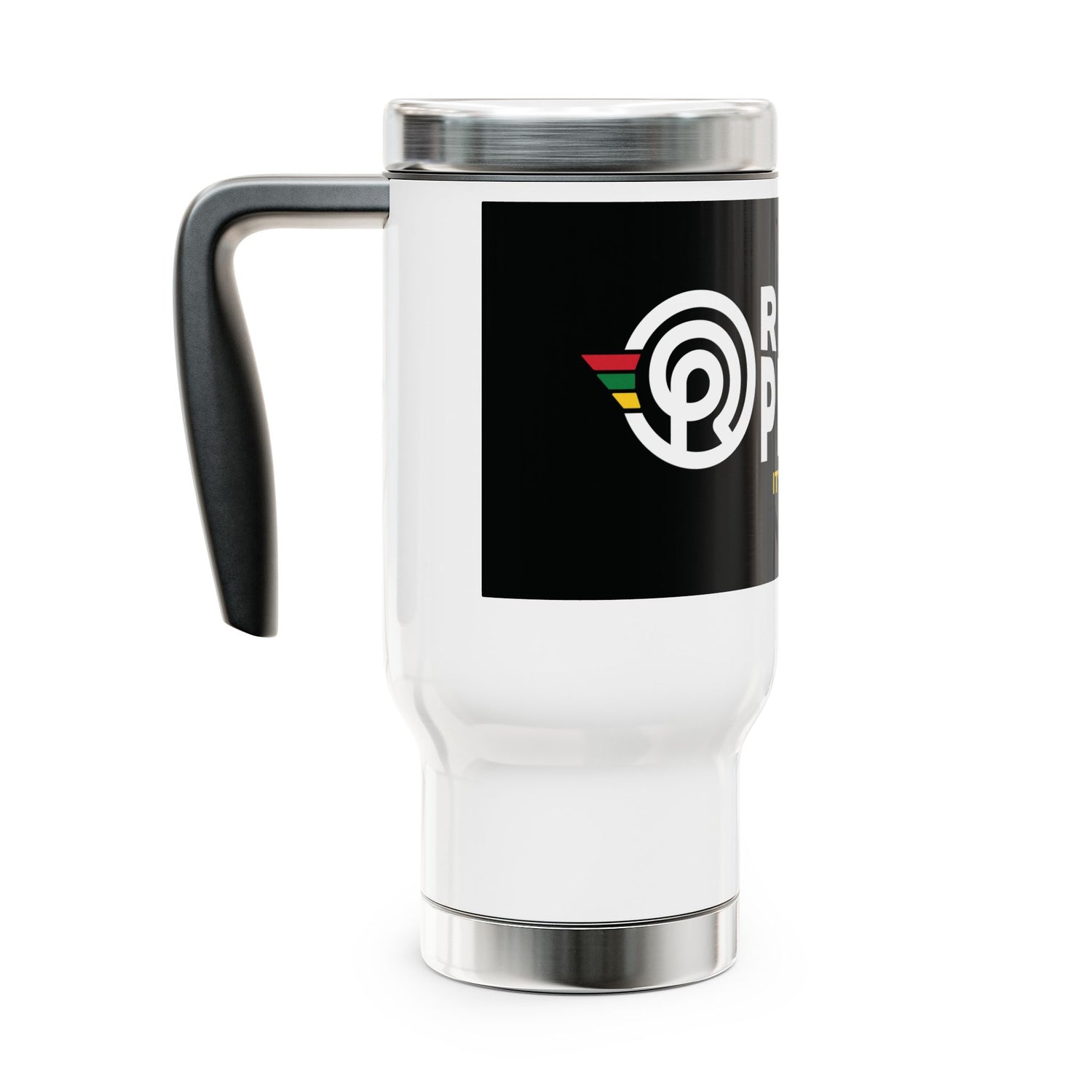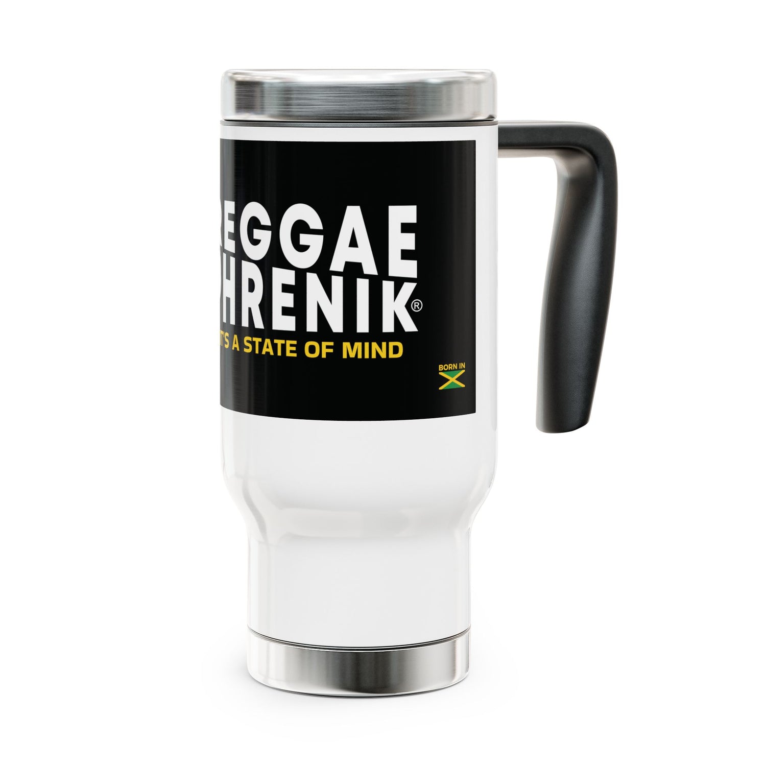 Take your drinks wherever life takes you with our stainless steel travel mug! It’s the perfect 14 oz. companion to keep your coffee hot or your iced tea refreshingly cool. Featuring a sleek glossy white enamel finish, a spill-resistant snap-on cap, and insulated lining, it’s not just practical—it’s a statement of your ReggaePhrenik® pride. Sip, savor, and show the world who you are. You're a ReggaePhrenik®