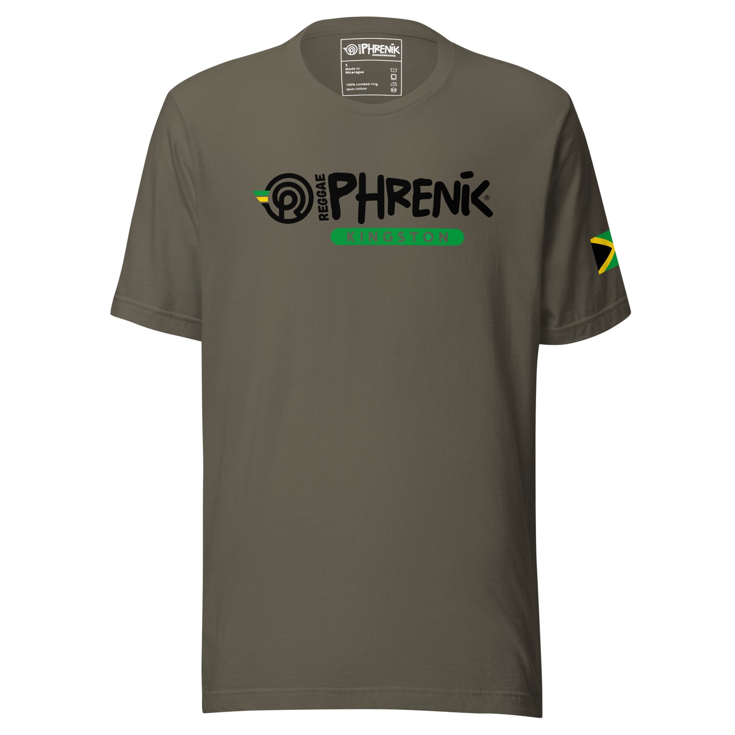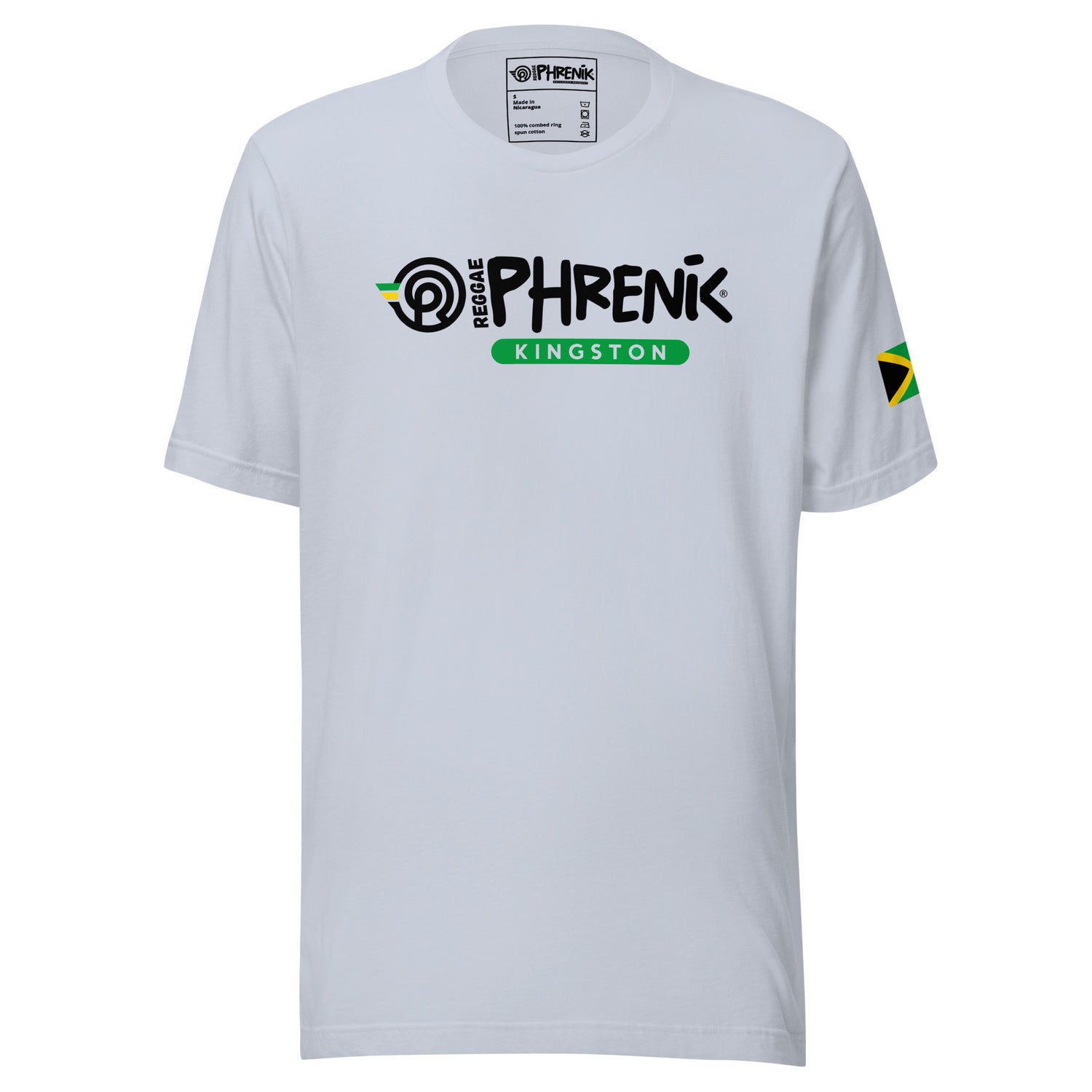 Made from 100% combed and ring-spun cotton the Kingston Phreniks t-shirt is part of our Geo Collection. This shirt is soft, lightweight, and effortlessly cool, with its flattering fit for everyone. Pre-shrunk for added durability, it's ready to accompany you on your journey through the pulsating streets of Kingston and beyond. With side-seamed construction and shoulder-to-shoulder taping, this t-shirt symbolizes unity and solidarity, echoing the spirit of togetherness celebrated in reggae culture. Wear it proudly as you represent your love of Reggae culture and country.