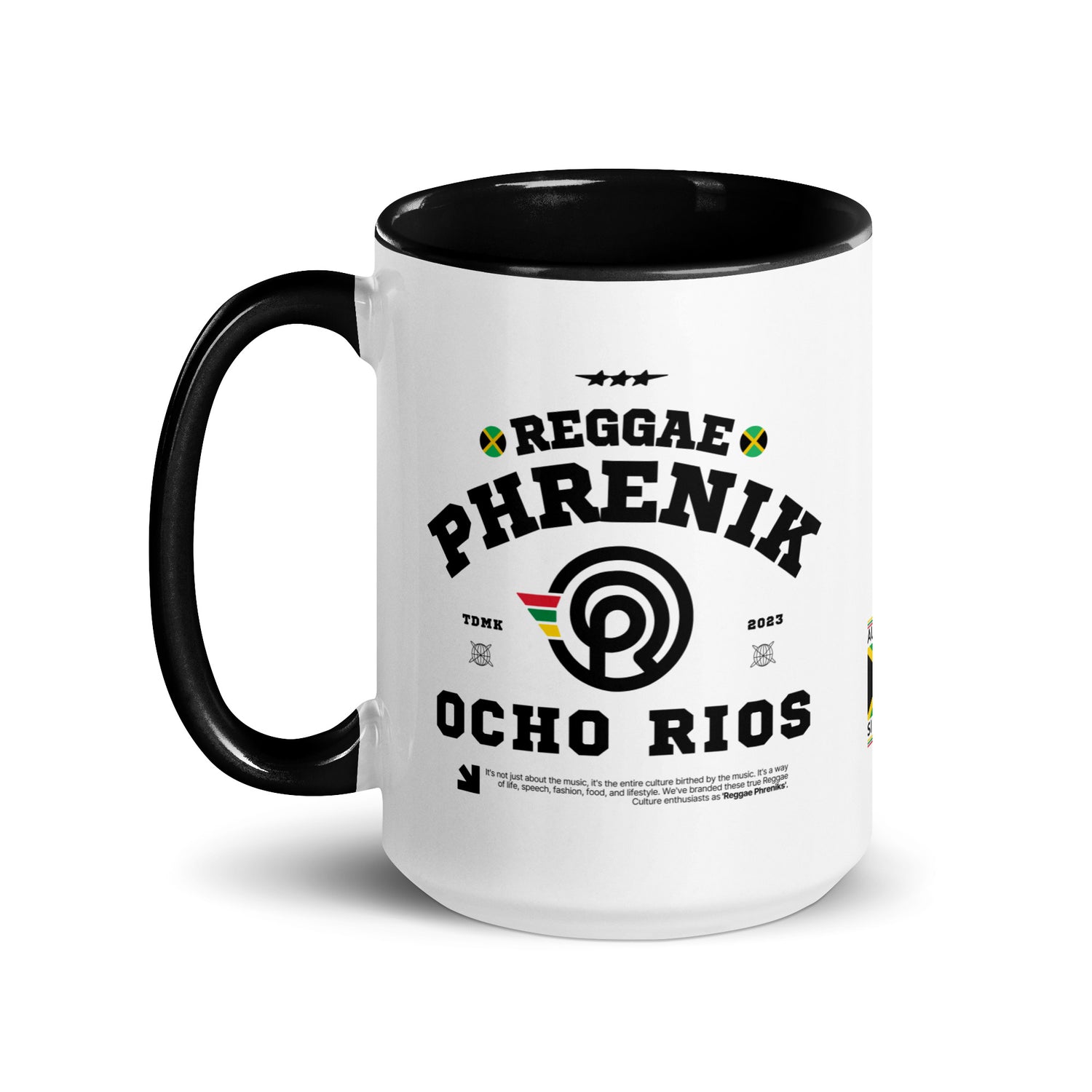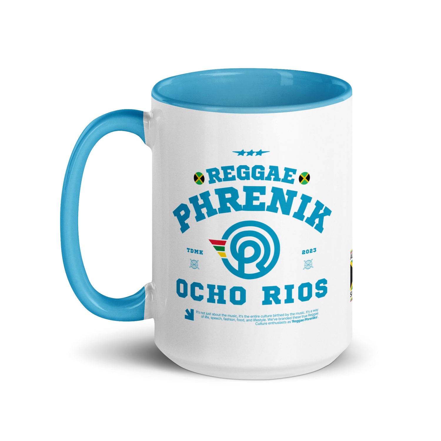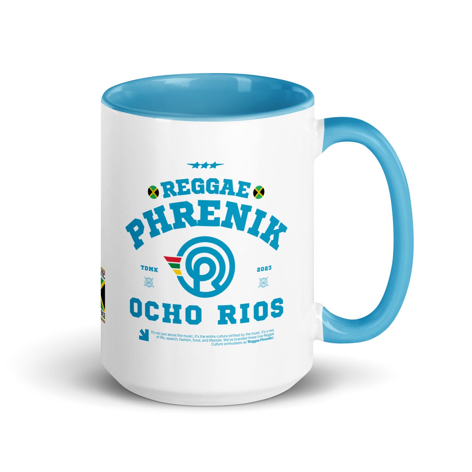 Elevate your sip game with the Ocho Rios Phreniks Color Block Mug, inspired by the lush beauty and cascading waterfalls of Ocho Rios, Jamaica. This vibrant ceramic mug brings a burst of island energy to your day with its bold color block design and tropical flair.